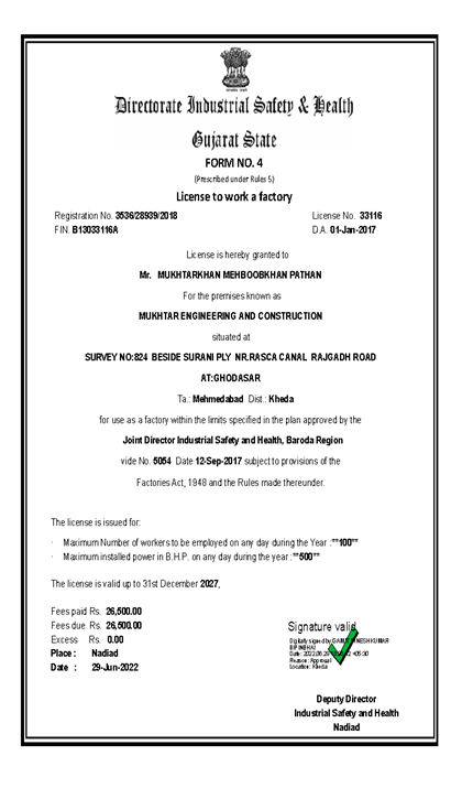 MUKHTAR ENGINEERING AND CONSTRUCTION FACTORY LICENSE
