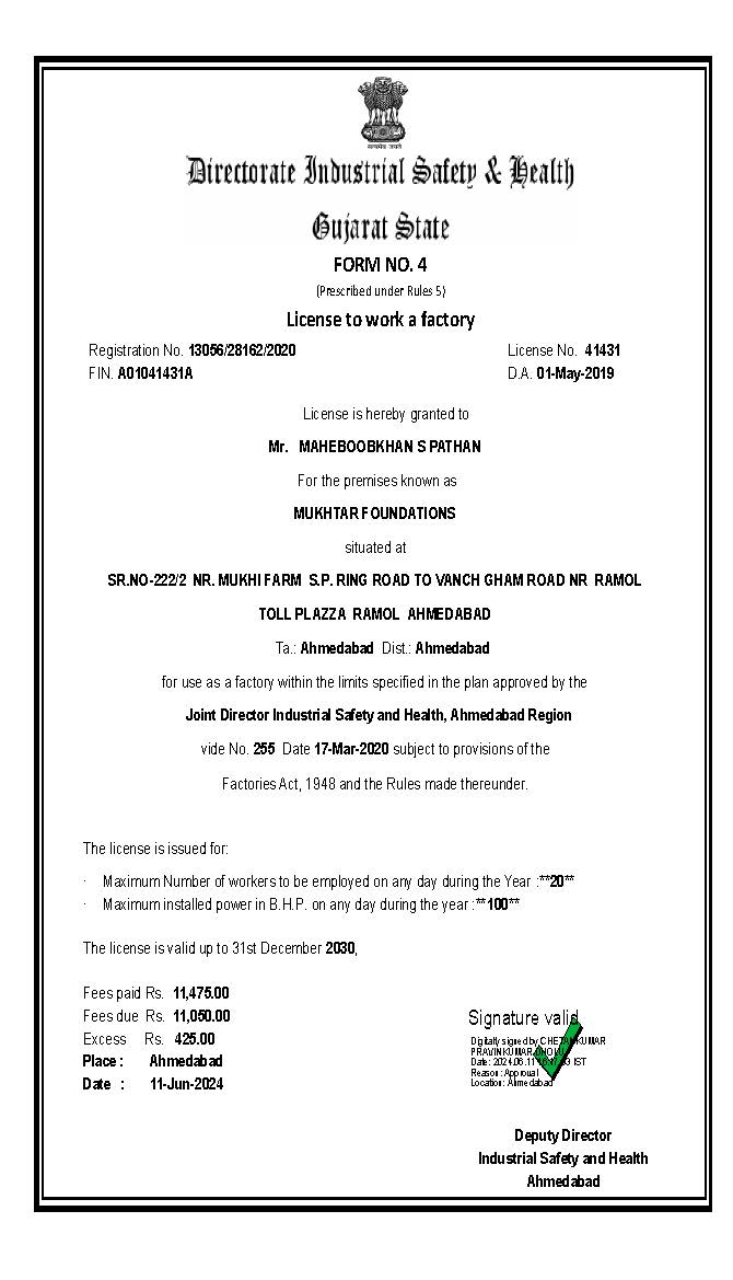 MUKHTAR FOUNDATIONS FACTORY LICENSE